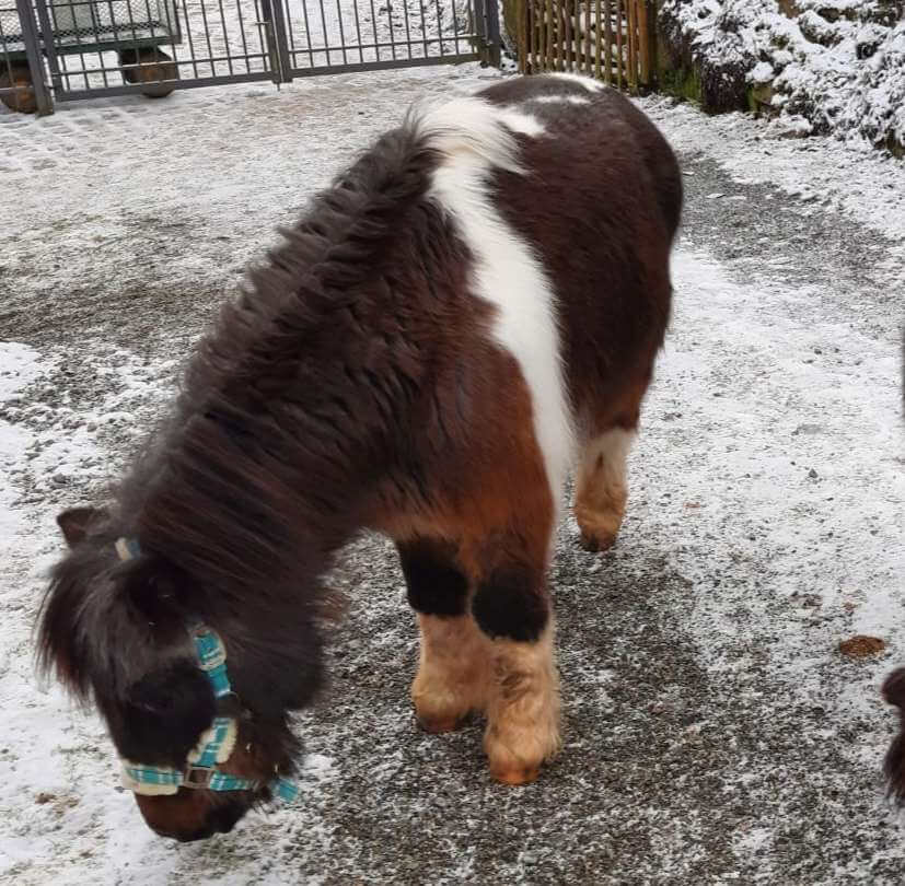 Bobby lebt seit Dezember 2024 bei uns. Er darf ebenfalls im Hofraum bei den Senioren wohnen, die aufgrund der Zähne extra mit Heucobs gefüttert werden. Bobby ist ein unfassbar folgsames Pony ohne jegliche Ansprüche. Vermutlich ist er einfach froh, nicht mehr alleine zu sein. Bobby liebt es wenn er gestriegelt wird, lässt sich einwandfrei Halftern und mag sehr gerne spazierengehen. Er kommt mit jedem gut aus und ist einfach vollkommen unkompliziert.