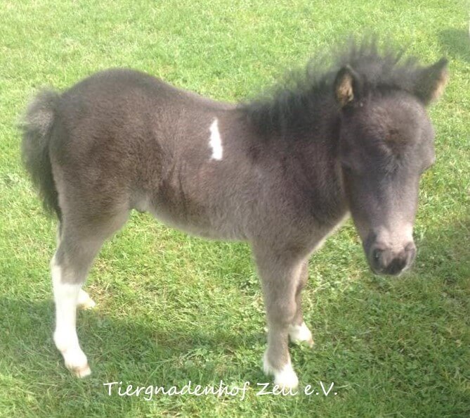 Bei Blue ist es ähnlich wie bei Humpelchen. Zuerst benutzt als Reitpony, unzählige male weitergereicht und als er von einem anderen Pferd getreten und am hinteren Bein ziemlich verletzt wurde, war er nichtmehr interessant und zu nichtsmehr zu gebrauchen! Von einem Besitzer zum anderen geschoben, für den Schlachter freigegeben. Zweimal war er innerhalb kürzester Zeit zum Verkauf ausgeschrieben, da die neuen Besitzer feststellten, er kann nichtmehr zur Belustigung geritten werden. Blue ist ein äusserst sensibles Pony, ein unheimlich verschmustes Kerlchen und eine wahre Schönheit! Er hat ein ganz besonderes Merkmal – er hat zwei verschieden Farbige Augen. Eines ist blau, das andere ist braun. Wir sind äusserst froh, daß wir Blue den letzten Besitzer abkaufen konnten, bevor er doch noch zum Schlachter gekommen wäre! Er ist eine riesige Herzensbereicherung für unseren Hof.